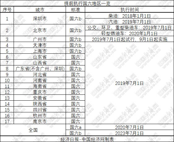 提前执行国六地区一览