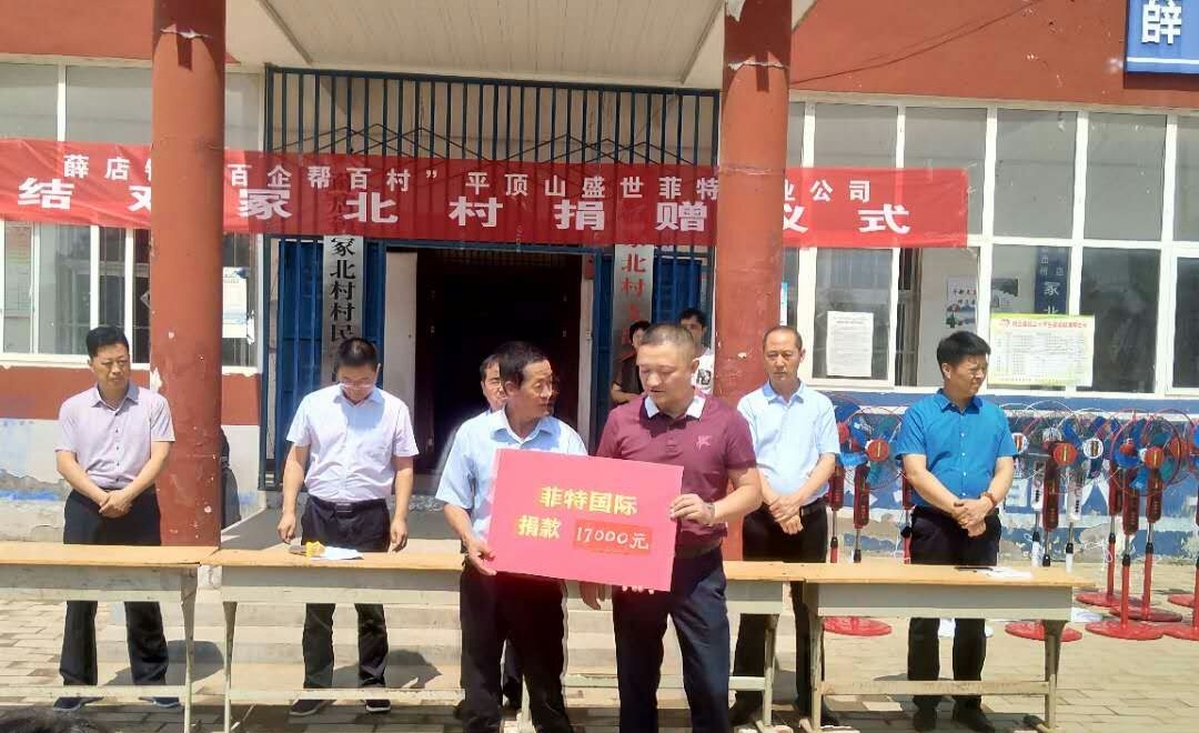 大河网迅 6月11日,平顶山盛世菲特实业有限公司结对帮扶冢北村捐赠仪式在郏县薛店镇冢北村举行。郏县委常委、统战部长巴清高,郏县工商联副会长巴士磊等出席仪式。