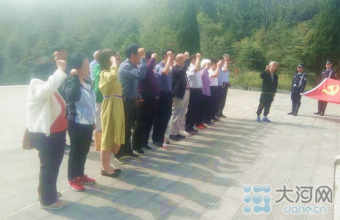大河网讯 9月25日上午,在河南省舞钢市虎头山新四军革命烈士陵园,先后有舞钢市武功乡、舞钢市公路局、平顶山市老干部局等12家单位870名干部职工,来这里悼念先烈,庆祝新中国成立70周年开展爱国主义教育活动。