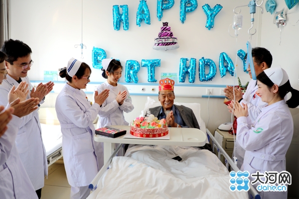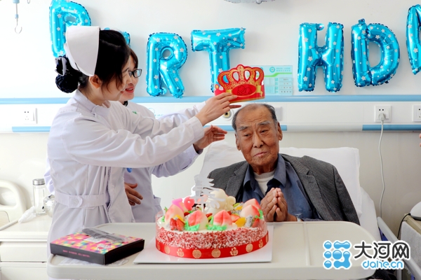 暖!漯河市二院医护人员在病房里给抗战老兵过生日送祝福