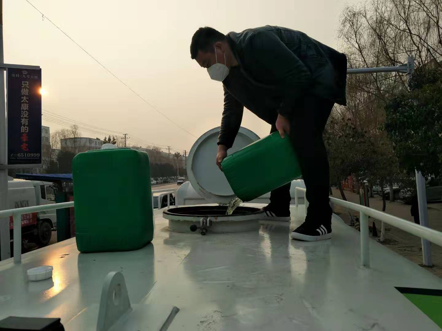 太康天空咋突然下起“毛毛雨”,原来是县城管局正在喷洒消毒液消杀病毒