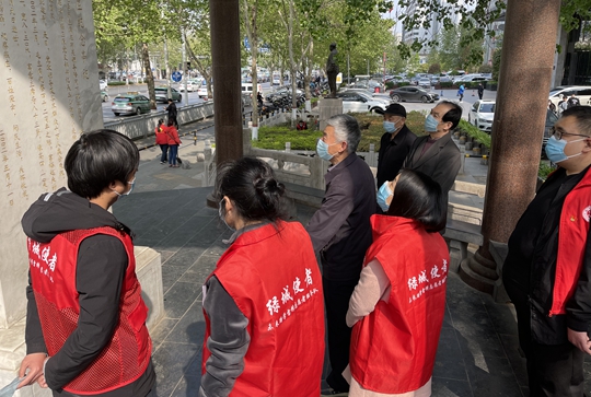 “1960年的燕庄远离郑州市区,毫不起眼的小村子只有一片片起伏的麦浪,谁也没想到,5月11日那天,毛主席会来。”辖区老党员李老师向大家介绍道,“当时,毛主席体察到燕庄民情,健步来到麦田,仔细询问小麦种植、粮食产量、生活情况,1970年5月11日,在毛主席视察10周年之际,燕庄人在此建亭,修亭子是为了更好地记住毛主席他老人家,记住历史。”志愿者们仔细聆听这段峥嵘岁月。