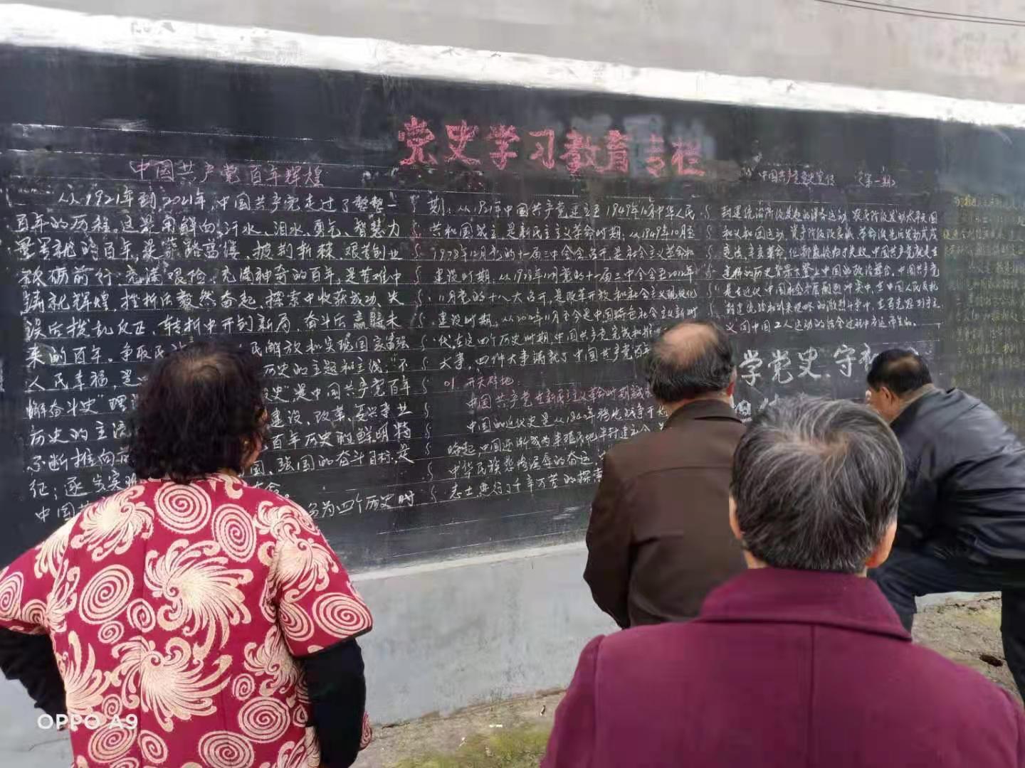 办好党史黑板报。出黑板报活动已被王营默默坚持了十余年。乡亲们不经意间的夸奖,在板报前时不时地驻足观赏,就是王营更新黑板报的动力源泉。党史学习教育开始后,身为党员的王营自感责无旁贷。他翻阅党史书籍和报刊,决定把党史趣闻轶事,新时代党史学习教育实践搬到黑板报上。