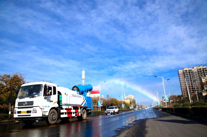 道路扬尘治理加码。增加城区道路机清扫、洒水频次,清扫扫保洁时间从平均7.5小时增加到9小时,提升保洁质量。同时,对部分积尘路段、绿化带、交通隔离栏进行全面冲洗,确保道路及公共设施干净整洁,无扬尘。