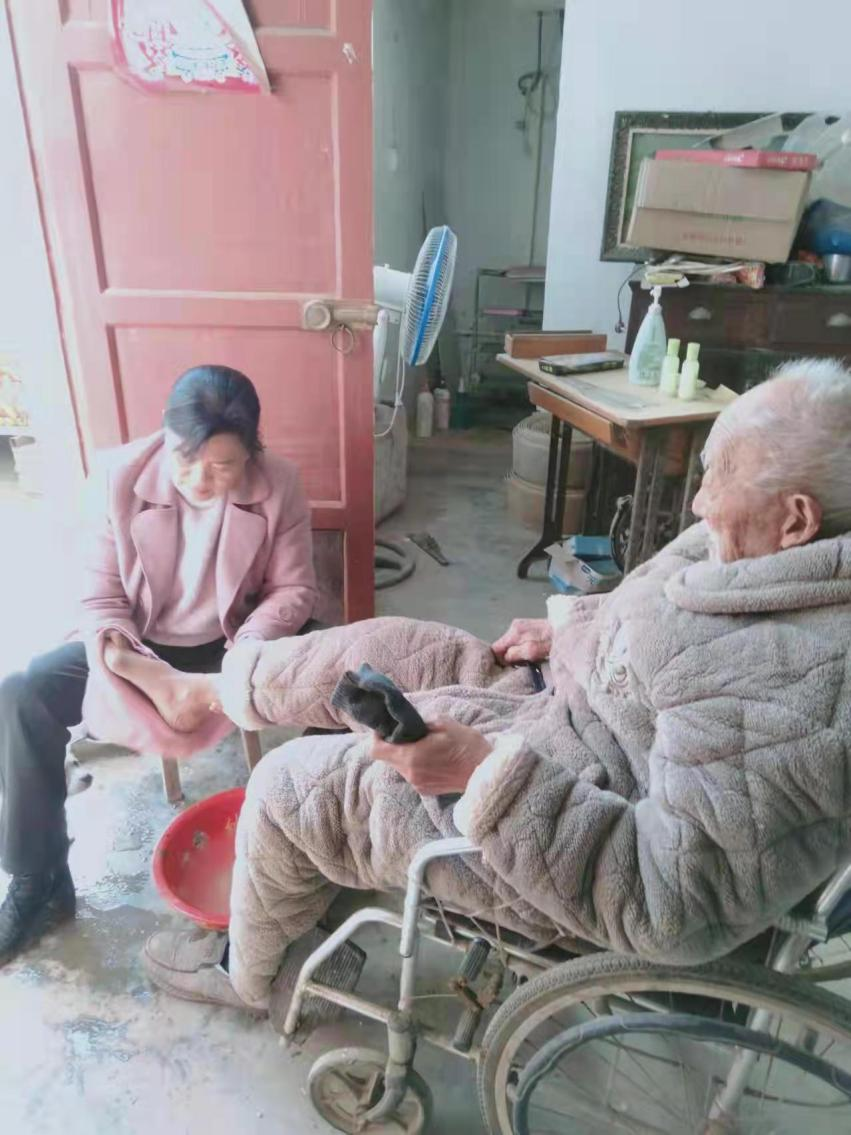 李东梅常说“公公年轻时不容易,没享过福,我要尽到一个亲生女儿的责任”。她是这样说的,也是这样做的。近三十年来,她就是一个亲闺女,无微不至的悉心照顾着公公的饮食起居,卫生等等方面。吃饭时,李东梅总是把公公最爱吃的饭菜放在他的面前,时时夹菜端饭到眼前,即便是吃一颗鸡蛋她也要把皮剥掉放在公公碗中,洗衣、洗被、理发这些事情李东梅从不推脱。