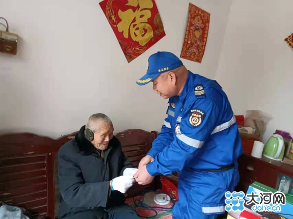 这是今天蛟龙搜救大队走访慰问的第5户特殊群众,接下来,他们将冒着大雪,继续前往姜店、辛安等乡镇开展慰问,为困难群体送上新春祝福。
