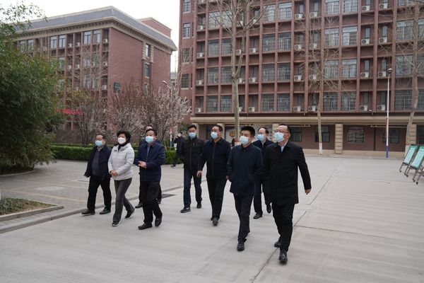 大河网讯 3月20日上午,开封市政府副市长刘震、市教育体育局党组书记、局长娄和彦到开封高中督导检查全寄宿制学校疫情防控工作,该校党委书记顾伯宇,党委副书记、校长宋全会,党委副书记、副校长刘培兵等校领导一同检查工作。
