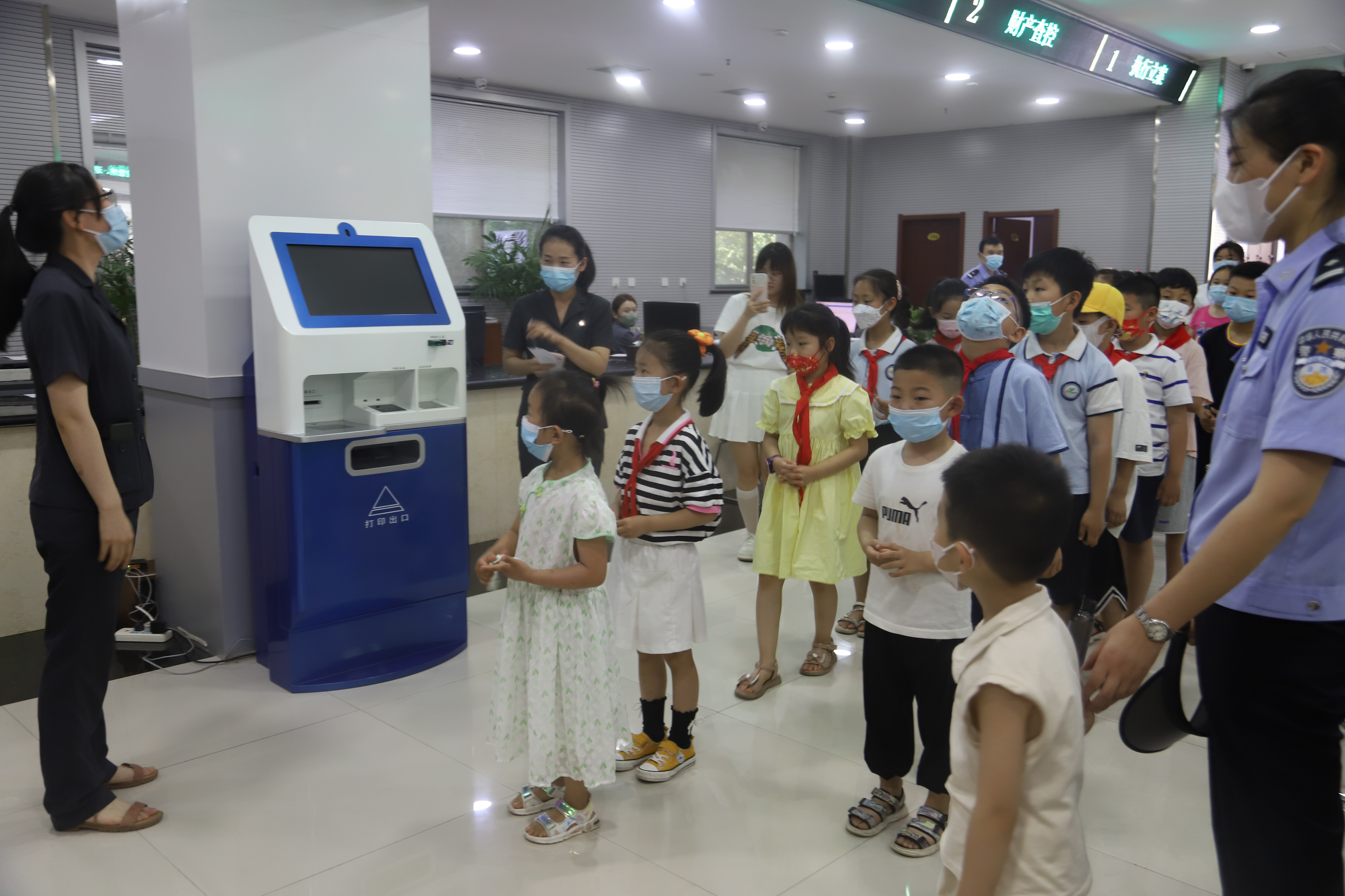 在法院工作人员的引导带领下,孩子们首先来到了诉讼服务大厅,法官邢敏佳用生动形象的语言依次为孩子们讲解了民事、刑事案件的立案工作流程;随后孩子们参观了八号审判庭,在法官的讲解下知晓了法庭审判设施的用途,真切感受了法律的威严。