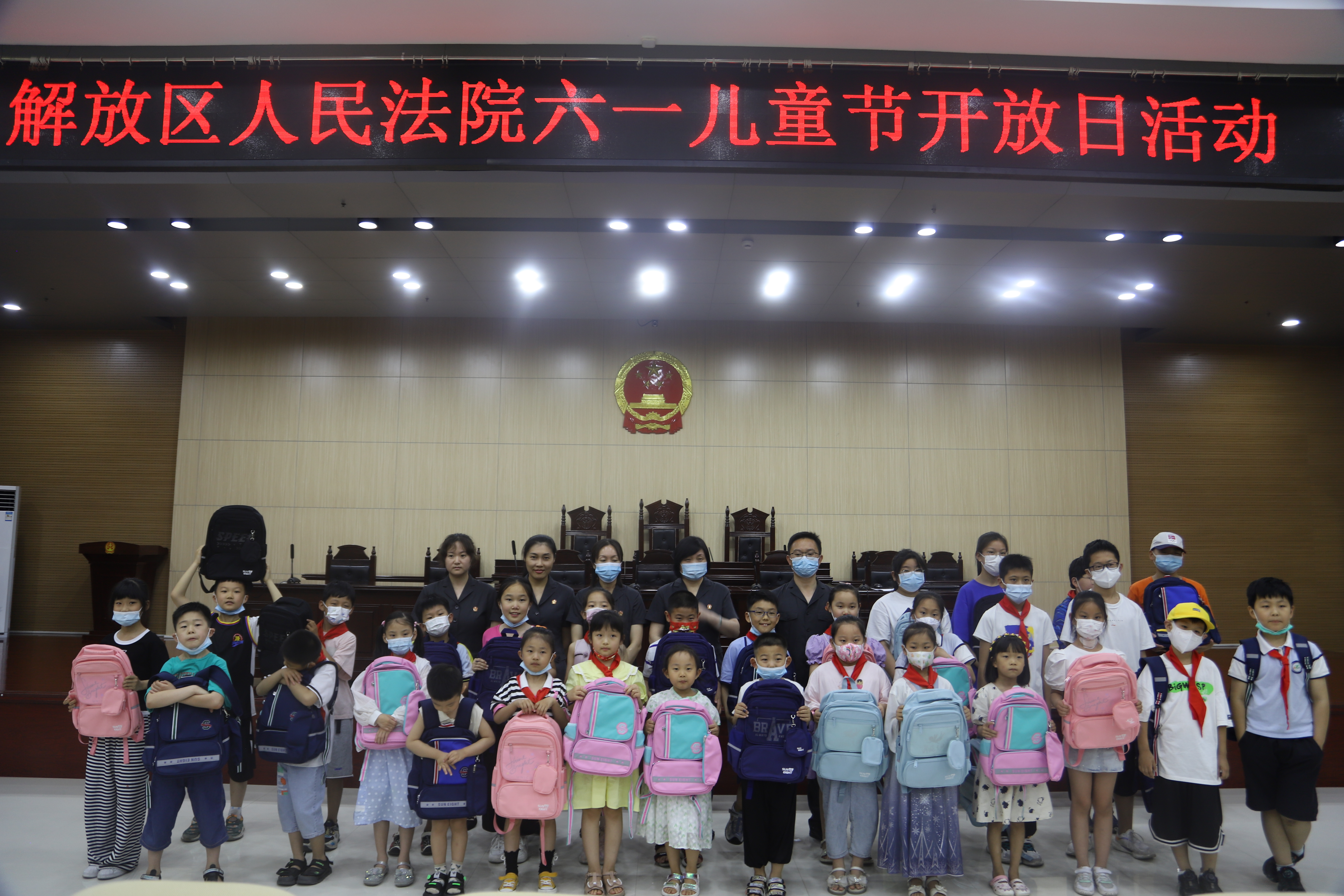 模拟法庭结束后,张倩庭长在二楼会议室用生动有趣的语言为孩子们上了一堂以“法治光芒,照亮六一”为主题的法治课,主要从“什么是法律?什么是司法机关?法院管哪些人和法院的一天”等四方面为孩子们进行了讲解,切实增强了孩子们对法院的认识与了解。活动结束后,解放法院更是贴心地为孩子们送上了实用又好看的六一儿童节礼物——书包。