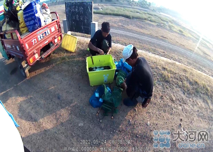 当天上午7时许,派出所民辅警巡逻到辖区邱楼村北汝河段内,一辆停靠在岸边的红色三轮车引起了民辅警的注意。巡逻民辅警迅速上前查看,发现车上装有鱼篓、网兜等捕鱼工具,河道内有2名约50岁的中年男子正在捕鱼收网。