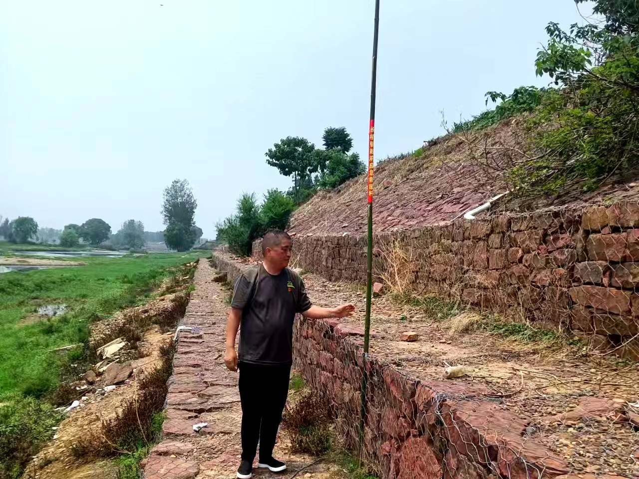 大河网讯 7月14日中午,烈日炎炎,酷暑难耐。在郏县长桥镇北汝河东长桥河堤,该镇党委委员、副镇长孙鹏飞带领农线全体同志,冒着41摄氏度高温,汗流浃背,正在河岸边安装自制的救生竿。