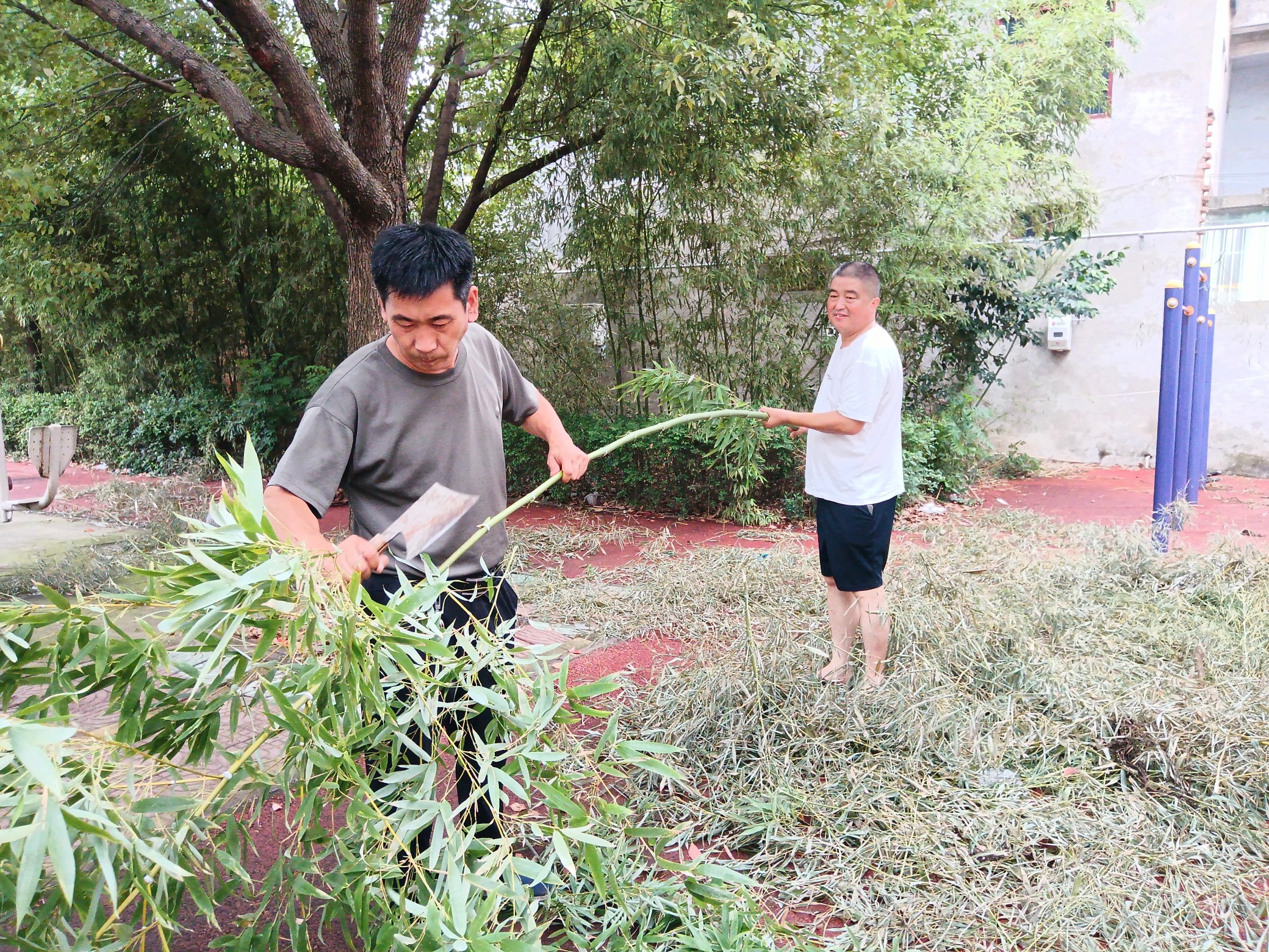 为节约成本,农线全体同志找来砍刀、斧头、手锯等工具,在镇政府竹园里挑选适宜的毛竹,赶制出了第一批救生竹竿85根。此次放置的救生竹竿长约8~12米,杆身张贴着“长桥镇政府应急救援杆”醒目字样。按照不同水域合理放置在重点河段、危险水域的明显位置。如遇到有人不慎落水时,周边群众可在第一时间拿起救生竹竿对落水者实施紧急救援。