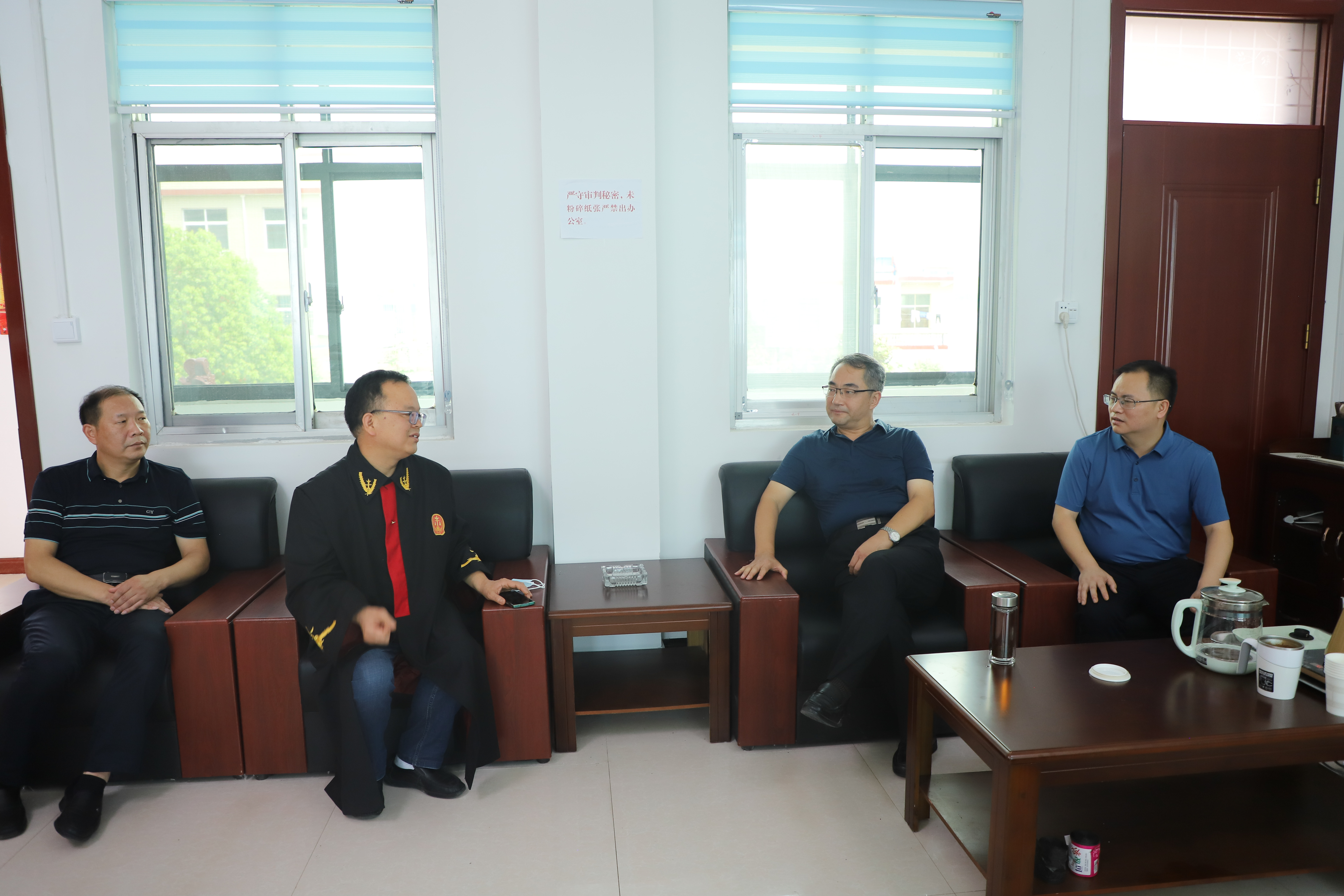秦德平实地查看了独树法庭的安检室、办公室及审判庭,详细了解法庭的基础设施建设、人员配备、干警生活、受理案件数量及类型、信息化建设及运用和多元化解纠纷机制建设等情况。并就推进人民法庭职能优化以及更好服务基层群众与法庭负责人进行了交流。