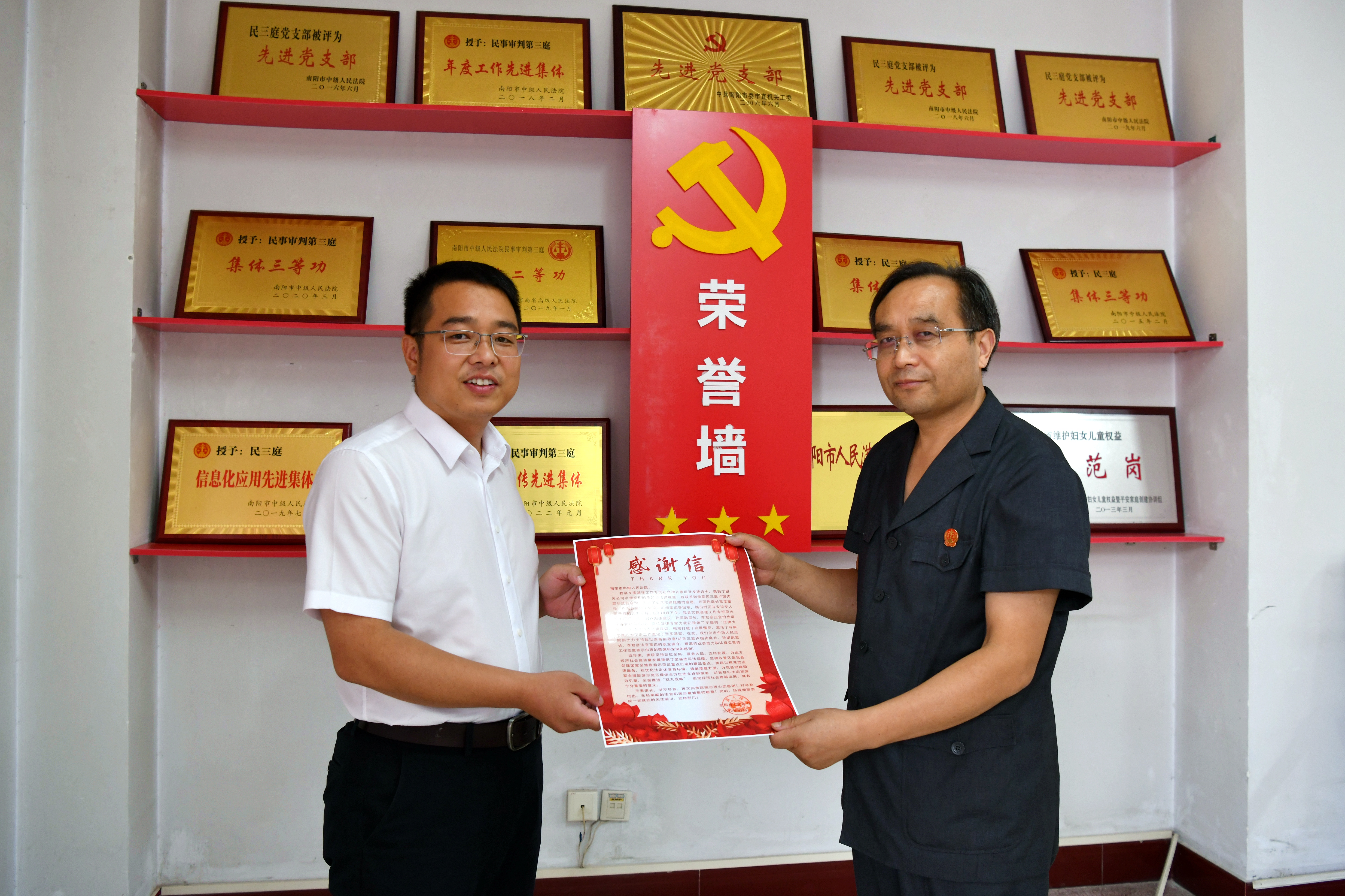 优化营商环境|淅川县政府向南阳中院法官赠送锦旗和感谢信