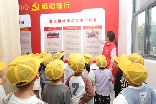 随后,志愿者老师带领孩子们参观黄店镇展览馆,为孩子们讲解黄店的历史和黄店镇精神文明建设成果,孩子们都聚精会神的听讲,在耳濡目染中受到黄店文化的熏陶,深切地感受到了家乡历史文化。最后,志愿者老师们带领孩子们来到黄店镇图书阅览室休息看书,为孩子们讲故事,使儿童们一起度过一个愉快的下午时光。