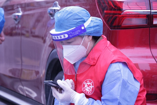 志愿者张丽从小区封控开始就加入到志愿服务行列,在小区内经常能看到身穿防护服的她,骑着电动车穿梭于小区大门和各单元之间,同其他伙伴一道,将一袋一袋业主在网上采购的生活用品及时送到每一个单元口,再用电话通知住户下楼取回,确保了每一位住户的生活所需;核酸采集时,她又在现场配合医务人员做好采样工作,并在业主群里及时回应业主所需,尽己所能给住户提供帮助。