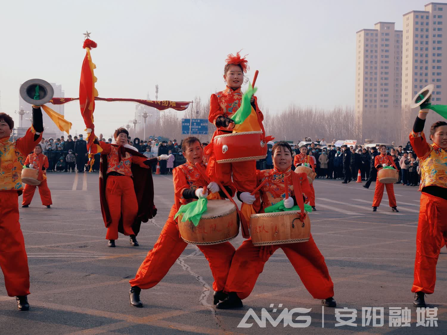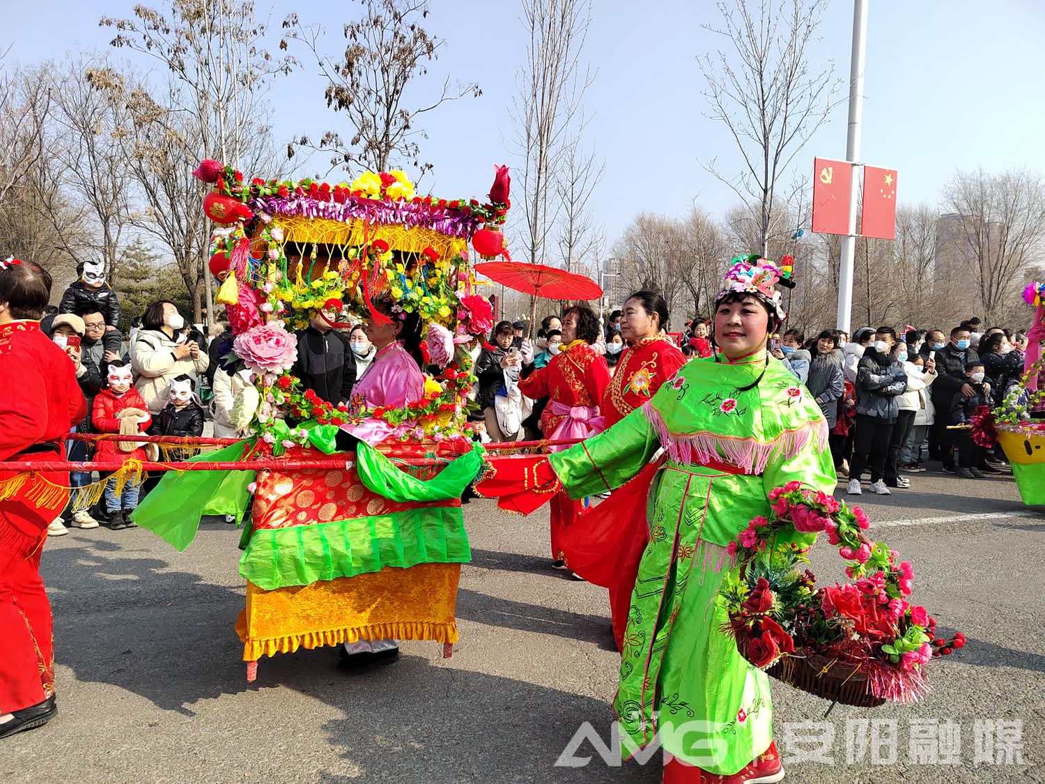当天,汤阴县夏都大道人和公园段锣鼓喧天,人潮涌动,处处洋溢着节日的喜庆气氛。在韩庄党建、文旅、现代农业等元素组成的五彩花车引领下,部落村的舞龙舞狮、武术表演,孙庄村的背阁、秧歌,大黄村的盘鼓、民俗表演等依次闪亮登场。表演者身穿节日盛装,在鼓乐伴奏下,舞动龙、狮,展示武术,扭动秧歌,划舞旱船,徐徐通过人和公园路段。