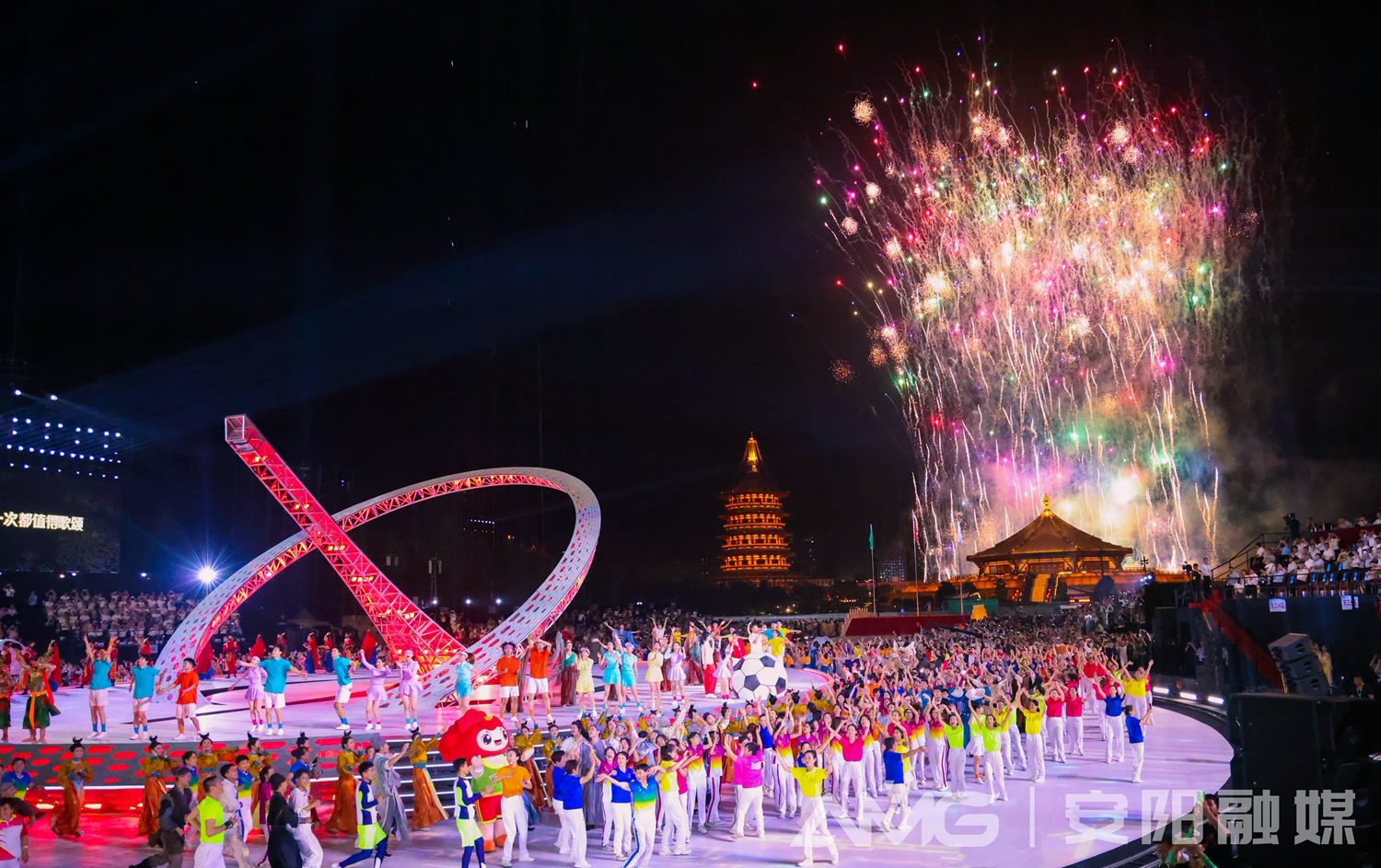 夜幕下,千年古都洛阳以城市为背景,以遗址为舞台,入场仪式变成入“城”仪式,将开幕式打造成流光溢彩的“古都T台”,让穿越千年的大遗址变成时尚亮丽的“会客厅”。来自全省各地的运动员相聚于此,共赴体育之约、梦想之约。