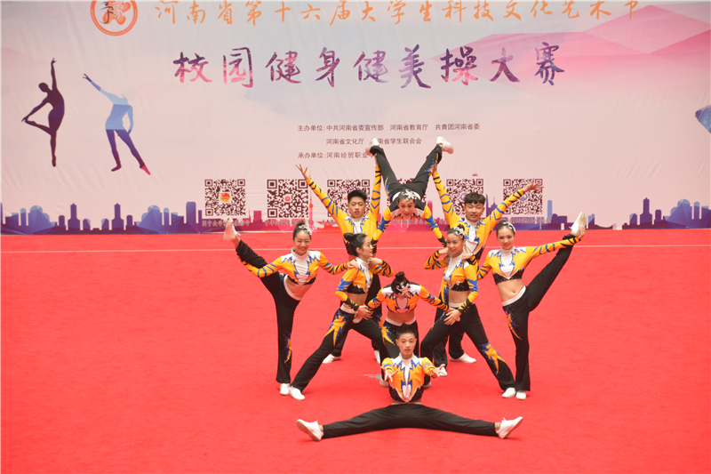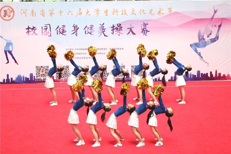 大河网讯 6月2日,由中共河南省委宣传部、河南省教育厅、共青团河南省委、河南省文化厅、河南省学生联合会主办,河南经贸职业学院承办的河南省第十六届大学生科技文化艺术节校园健身健美操大赛举行。
