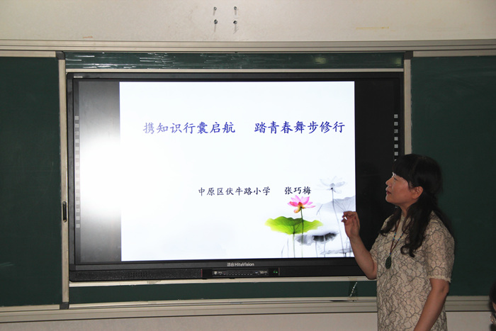 副校长孙艳介绍了伏牛路小学的办学理念和育人目标,号召新上岗教师要努力培养学生"做一个心灵高贵的人"。培训会上还邀请了郑州市名班主任工作室主持人老师张巧梅,为新教师进行班级管理的经验介绍。张巧梅从"我与教育是种缘""我眼中的教育本质""与学生相处的艺术"三方面阐述了班级管理的方法,并针对班级管理案例和在座的新教师进行了互动交流。
