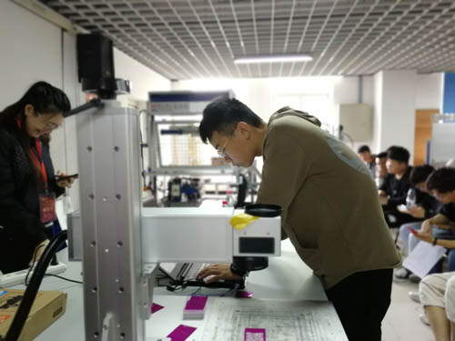 记者一行随后走进智能制造学院的激光标刻技能比赛现场。在现场,记者们遇到了一位特殊的“考官”,作为华工激光此次前往学校举办的技能比赛赛场评委,周宇的特殊是因为他曾是此专业2016级毕业生,入职虽不到三年,月薪已达7000元,正是因为他在企业的优秀表现,才促成了企业与该专业的订单班合作,成功成为了学弟学妹入职华工激光的“媒人”。