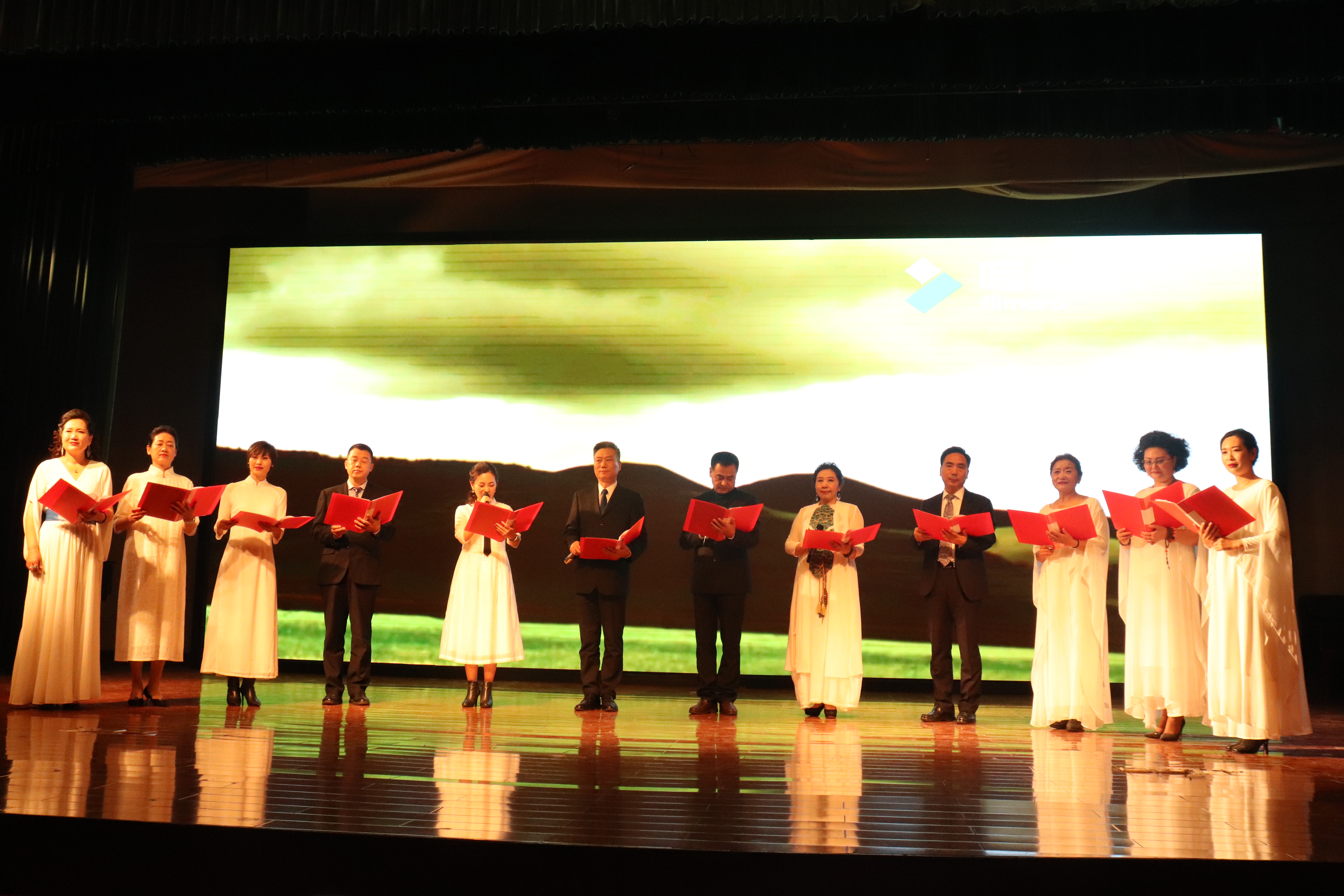 活动中,《读中国》、《大河长歌》等二十余首新赞美诗以及公安战线王朴玉朗诵的诗歌《不朽》让全场掌声不断。该校艺术设计学院、社科部教师朗诵的诗歌《英雄赞歌》《你的故事,波澜壮阔!》以及学生代表表演的《华夏韵》等,都在用自己的方式来表达爱国主义热情。(彭世民)