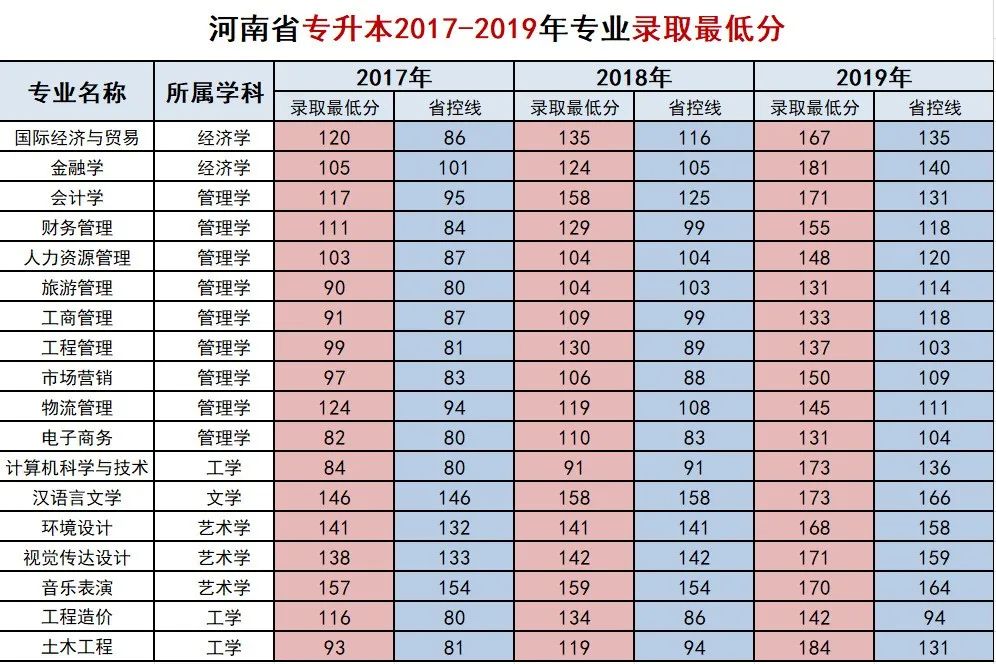 现将该校2017—2019年各专业录取最低分发布如下: