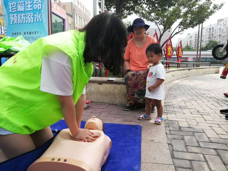 国际教育学院志愿者在濮阳市华龙区孟轲乡玉兰社区开展“中小学生防溺水六不原则”和“心肺复苏”急救方法宣讲