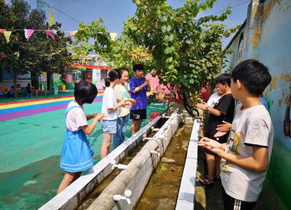 第一临床学院“相约盛夏,‘医’起助学”大学生志愿团队教小朋友“七步洗手法”