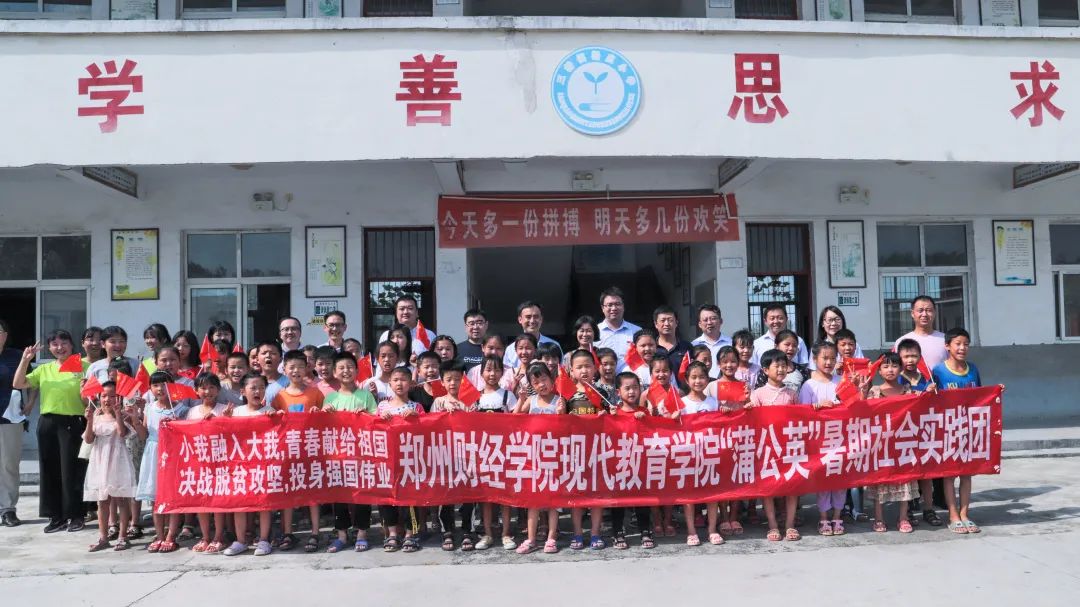 7月20日至8月11日,郑州财经学院现代教育学院“蒲公英”暑期实践团,采取线上线下相结合的方式,分别在信阳、新乡、驻马店等地的14个村落开展了为期20天的义务支教活动,由40余名实践队员及249名小学生参与其中,实践队员们教小朋友们画画、书法、粉笔字等,为家乡的教育事业注入青春活力。其间,为积极响应国家精准扶贫政策,8月10日,该校工会主席张彪一行9人赴“蒲公英”实践团支教助学地点——驻马店市汝南县三桥镇杨庄小学,开展助力脱贫攻坚捐赠活动。