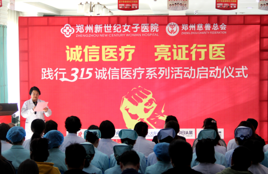 大河网讯 3月14日,为迎接315国际消费者权益日到来,郑州新世纪女子医院“诚信医疗亮证行医——践行3·15诚信医疗”系列活动启动仪式在医院举行。郑州新世纪女子医院业务院长苏朝女士、郑州市三院原妇产科主任徐佩安教授、郑大三附院(省妇幼保健院)原妇产科主任许心杰教授、郑州市第三人民医院原妇产科主任耿白霞教授以及媒体代表、医院医护人员、社会各界人士等近百人出席活动。