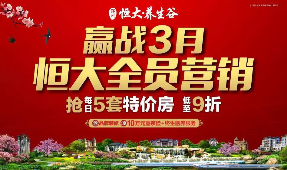 一年之计在于春,暖春时节置新家。【郑州恒大·养生谷】全员营销月大优惠,钜惠9折,8500元/㎡臻享建面约80-222㎡健康美宅,含品牌装修,会员享10万元重疾险及终生医养服务。全员营销月,助您轻松置业,把家安在郑州恒大·养生谷,悦享健康配套,每一天,与幸福生活不期而遇!