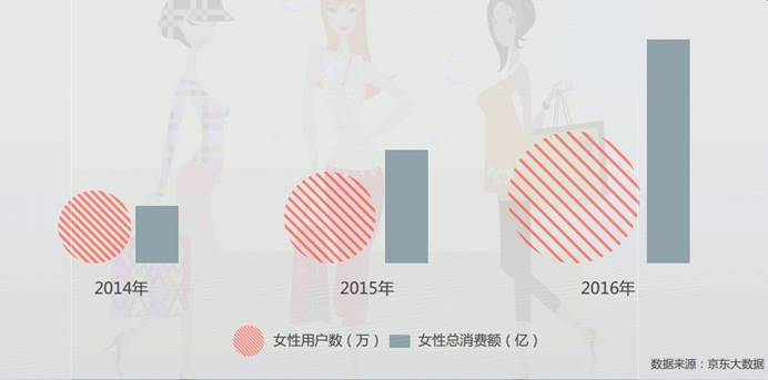 每年妇女节前后也是女性消费的高峰期,近年来,女性消费实力不断攀升,成为电商关注的焦点。据京东大数据研究院相关负责人介绍,过去三年时间里,在京东下单的女性用户人数增长了4倍以上,销售额增长近5倍。