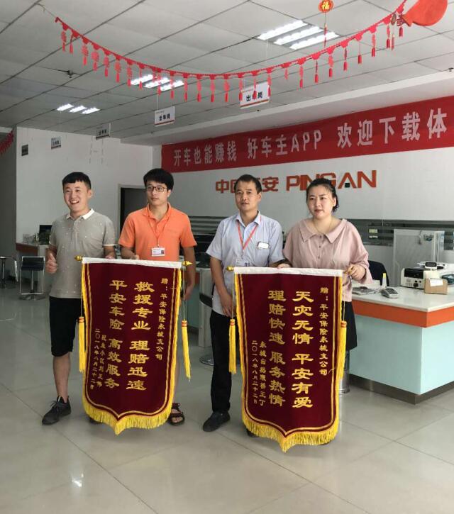 8月19号上午,95511先后转来刘先生和王女士水淹车的报案,面对案情,两位查勘同事分工协作,及时应对,第一时间赶赴现场。同时,细心指导客户应对方法,避免了可能发生的损失,并及时为客户联系修理厂现场处理,真正做到了让客户放心让客户称赞。8月22日,两位客户一前一后来到商丘中心支公司门店,为两位查勘员送去锦旗。