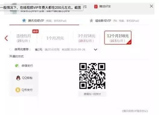 据了解,腾讯视频年费VIP会员为198元,基本上大部分在线视频VIP会员也是200元左右,如某用户开通了10个VIP会员,这样算下来,一年就2000多块钱。