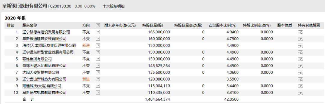 资料显示,截至2020年末,阜新银行的总资产为1656.01亿元,存贷款业务在阜新市市场占有率分别为43%和51%,在当地所有银行中排名第一。