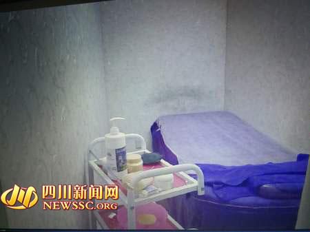 店内被分隔成几个小间,消费者在狭小的空间里接受面部护理。(图片翻拍至锦江公安提供视频)