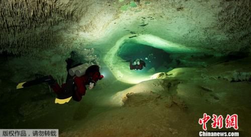 中新网1月18日电 据外媒报道,一个潜水团队近日在墨西哥东部发现了连通两个地下洞穴的通道,发现了或是世界上最大的被水淹没的洞穴。据报道,这一发现或将有助于揭开古老玛雅文明的神秘面纱。