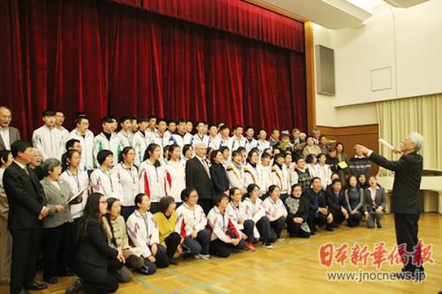 汪婉鼓励同学们一定要坚定不移地促进中日两国的世代友好,让自己成为和平的力量、友好的力量。当天,访问团的师生们还在中国驻日本大使馆与日本民间反省侵略战争的“再生之地合唱团”同台演唱,通过歌声进行交流。