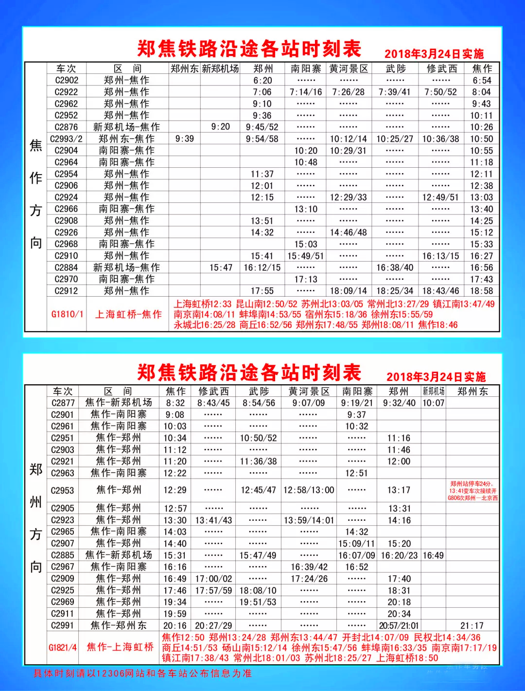 值得注意的是,C2901次由原来的9:02焦作-郑州变更为9:08焦作-南阳寨,南阳寨站的具体地址为郑州市惠济区北三环铁东路交叉口向北300米路西(江山路第一小学西侧铁东路)。具体车次相关信息可通过12306网站查询。(线索提供:栗璋鹏)