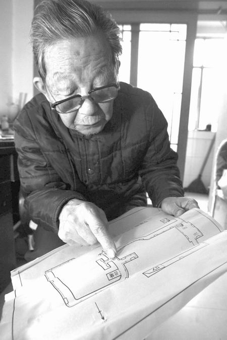 ▲刘东亚向记者展示他所绘制的领事馆地下牢房结构图