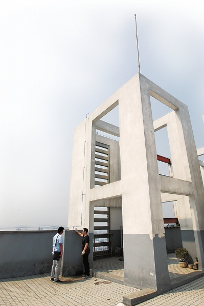 大河报·大河客户端记者随机走访了几个多层小区,发现防雷设施存在一定的隐患。林科路和经一路交叉口附近一小区楼顶,安放了不少太阳能热水器。有的用户用钢丝或铁丝将热水器与防雷所用的接闪器捆绑在了一起。