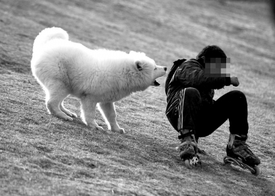 郑州东风渠畔,一条没有拴绳的狗突然向草地上一名小男孩儿扑去,所幸有惊无险。