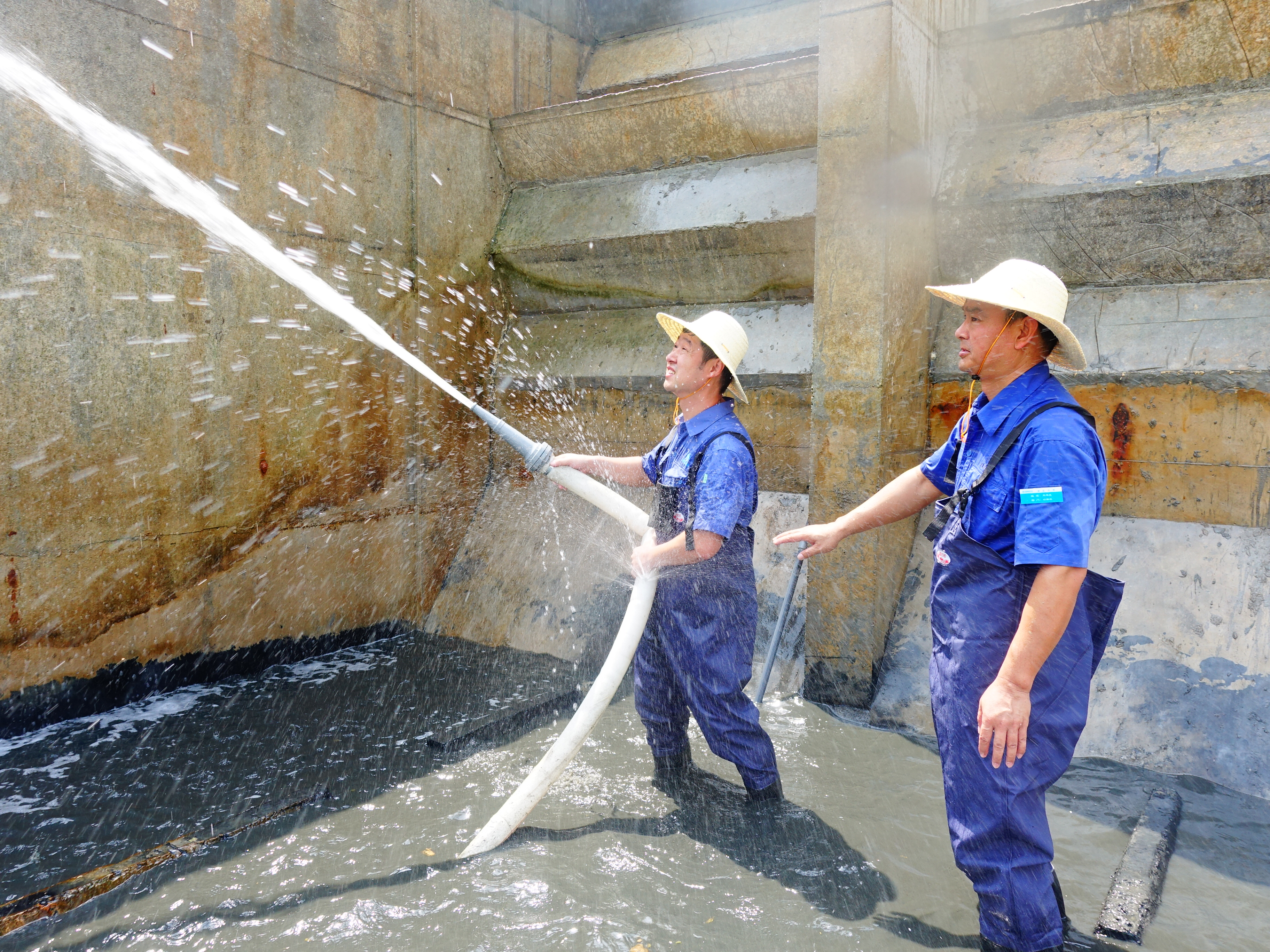 "虽然沉淀池上有自动排泥行车每天不间断进行排泥,但池壁两端仍有死角,需要人工洗刷。为保证市民喝上安全放心水,我们每年会在夏季供水高峰前进行一次这样的清洁工作。"该公司副经理赵安全在接受大河网记者采访时说。