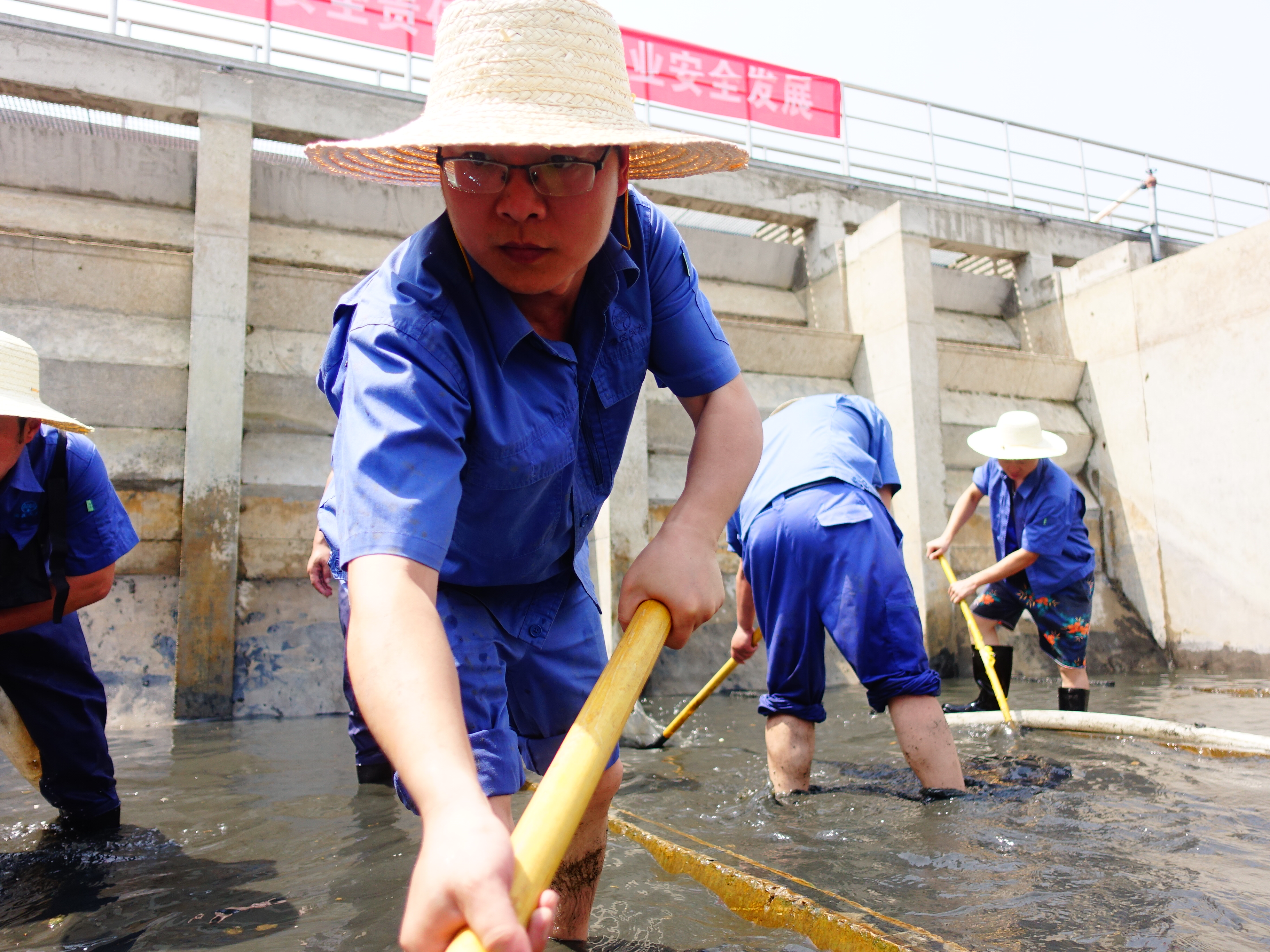 大河网讯(记者 莫韶华)泥巴裹满裤腿,汗水湿透衣背。用这首歌的歌词来形容郑州航空港水务有限公司的员工们再合适不过。6月7日上午,为保证夏季高峰供水,让市民喝上安全放心水,该公司的员工顶着38度的高温,在烈日骄阳下人工清洗沉淀池。