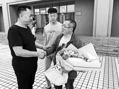 6月11日,新密市第二高中。“穷有信”男孩陈奕帆来了,“富且仁”车主薛战民来了,这一次,主角不是他们,而是陈奕帆的班主任石玉锋。高考前,石老师跳进窨井帮考生捞身份证的事正在网上热传,受助女生孟丽专门买了鲜花来致谢。