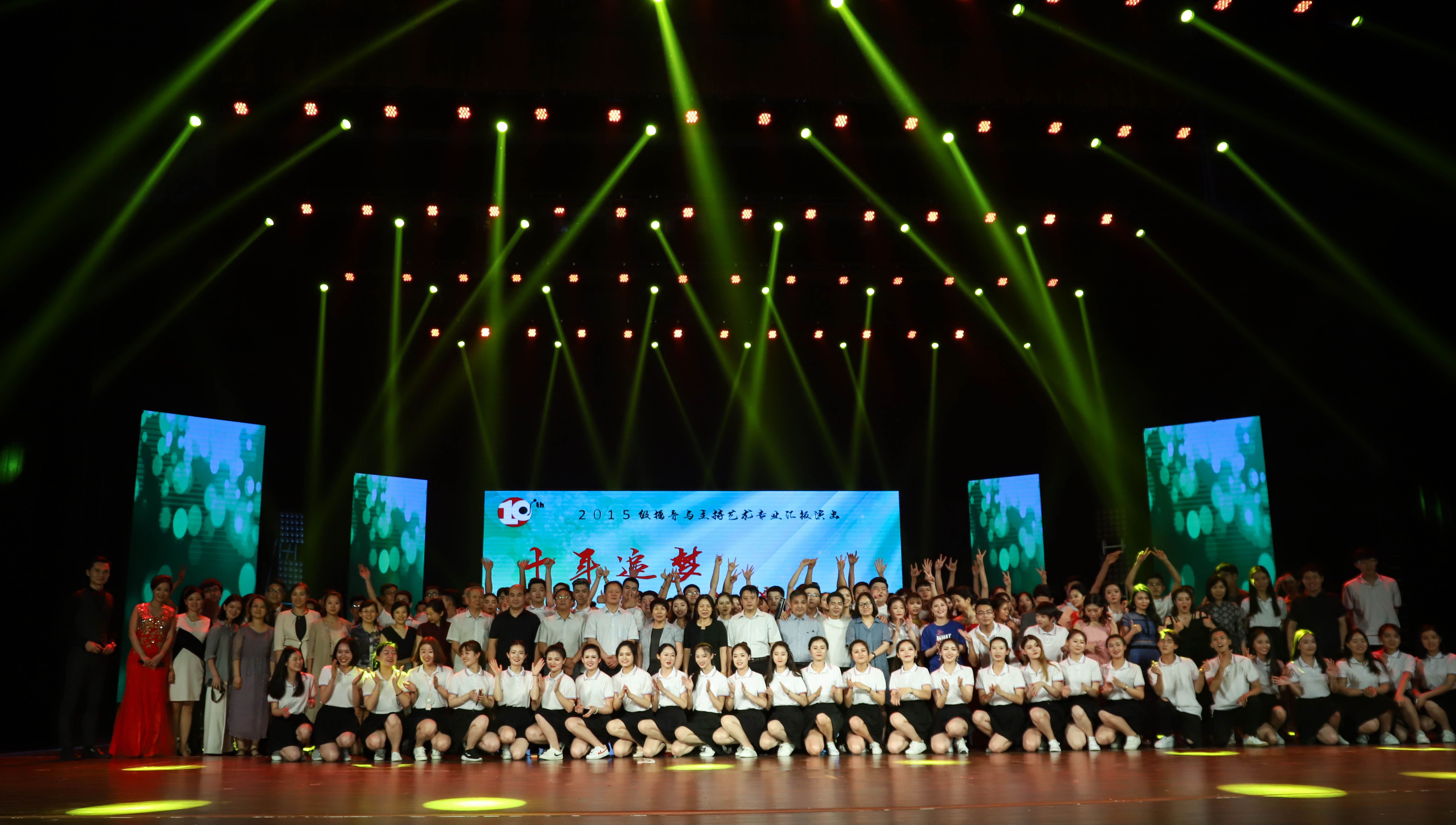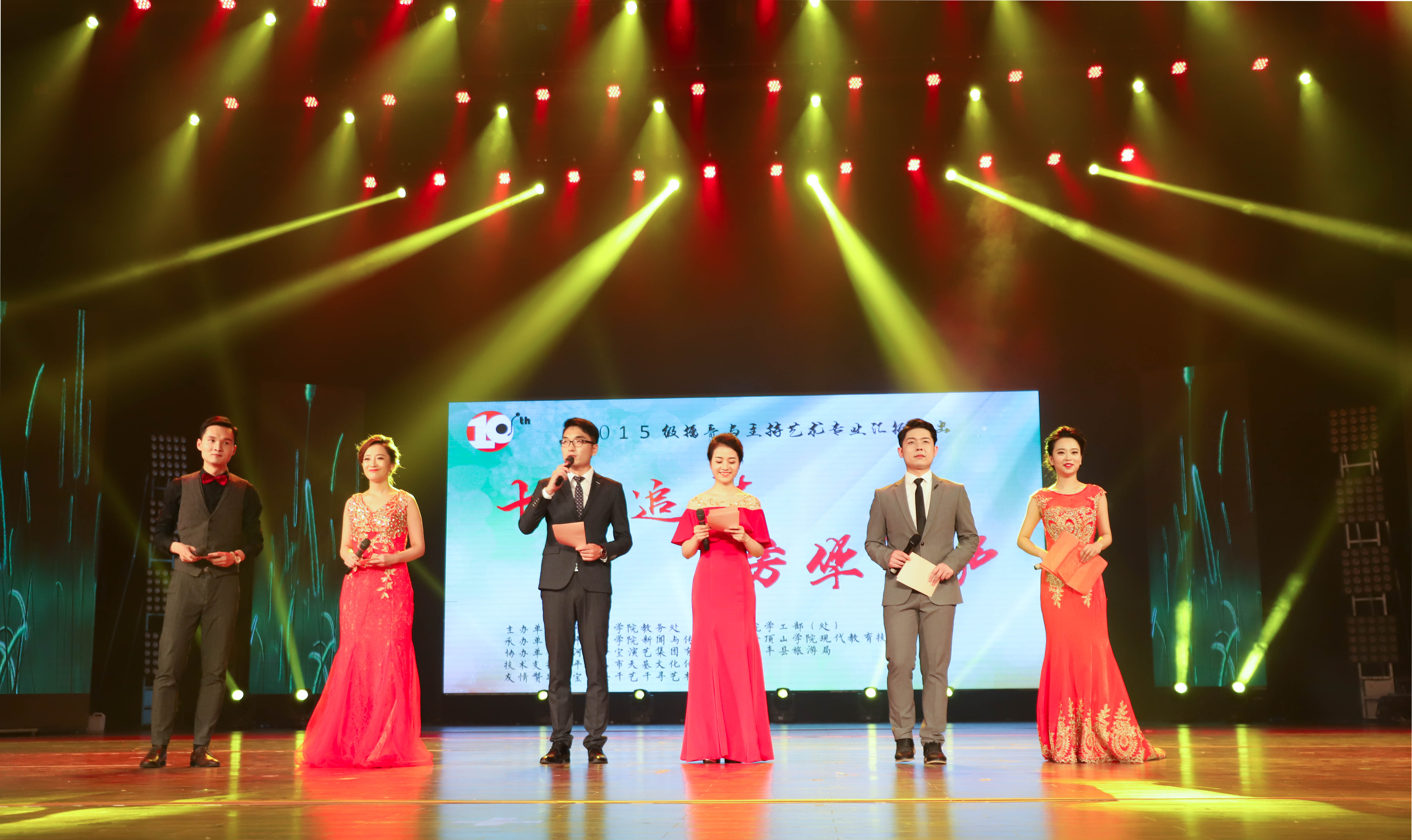 本次汇演由新闻与传播学院优秀毕业生王少钏、崔晓东、张婧双、郭晓伟和王翌珺担任其中五位主持人,以此表达对新闻与传播学院建院十周年的致礼。