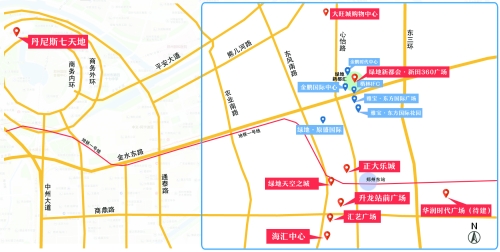 另外,距离较近的有东站的正大乐城、海汇中心、汇艺广场、升龙站前广场,以及较远的CBD区域商业丹尼斯七天地、熙地港等。