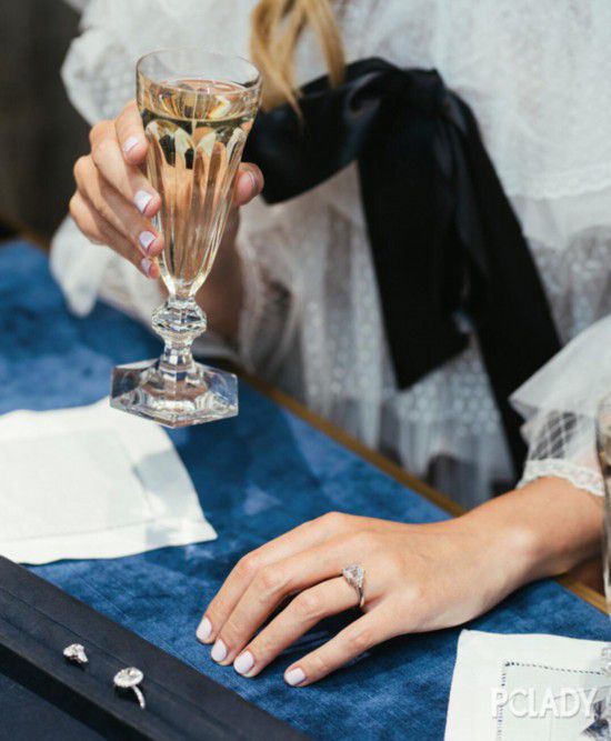 搭配优雅大气的钻戒,清淡雅洁,极具女人味。
