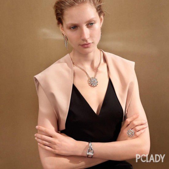 钻石与服装的色彩完美呼应,尽显落落大方的气质,简约而不简单。